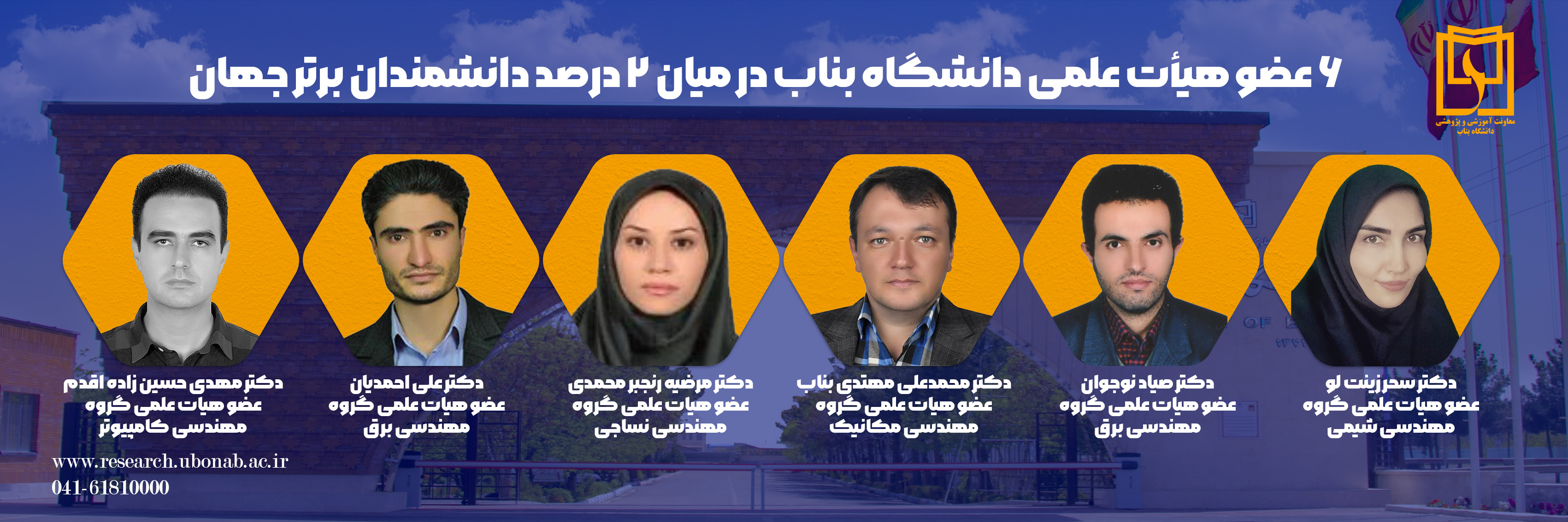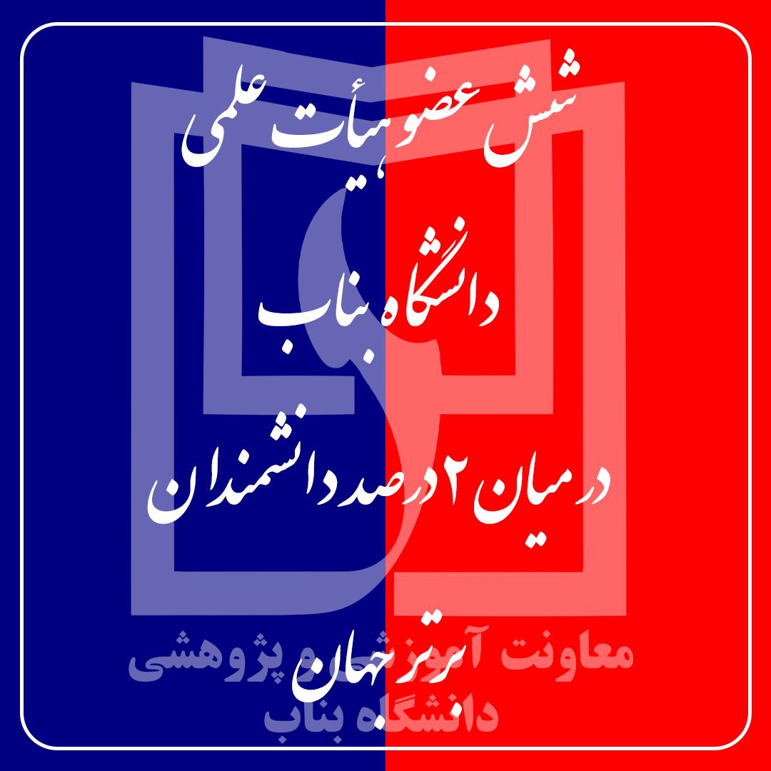 اسامی شش عضو هیأت علمی دانشگاه بناب که در میان ۲ درصد دانشمندان برتر جهان قرار گرفتند به شرح ذیل است: